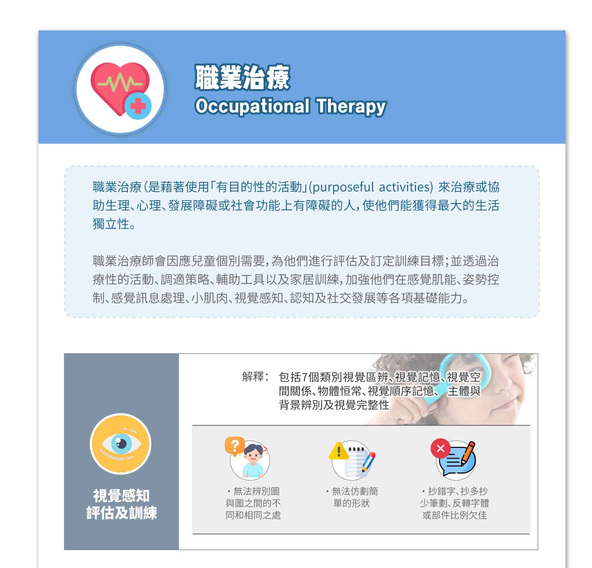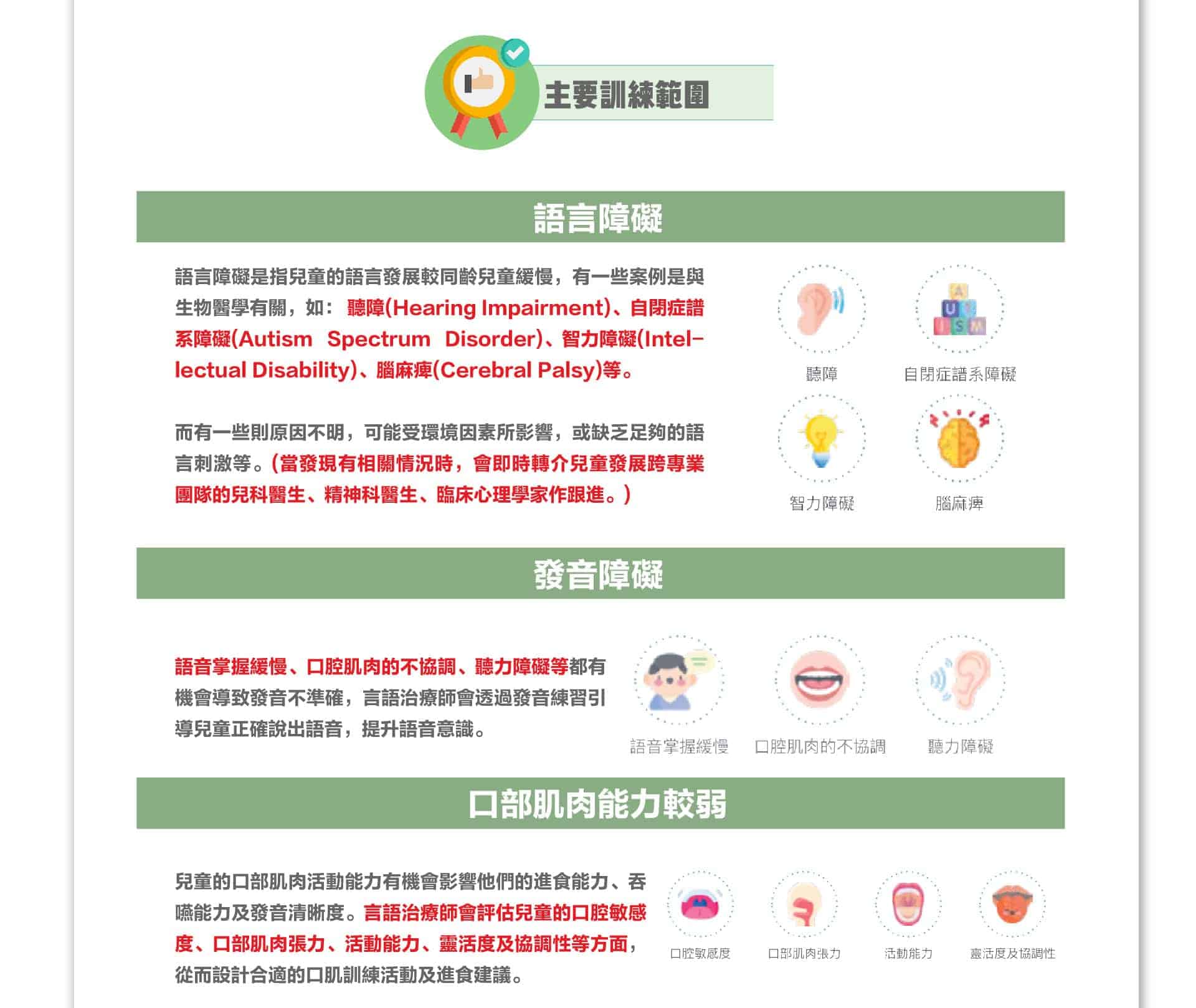 (包括不同的專科醫生、治療師作診斷及培訓規劃)